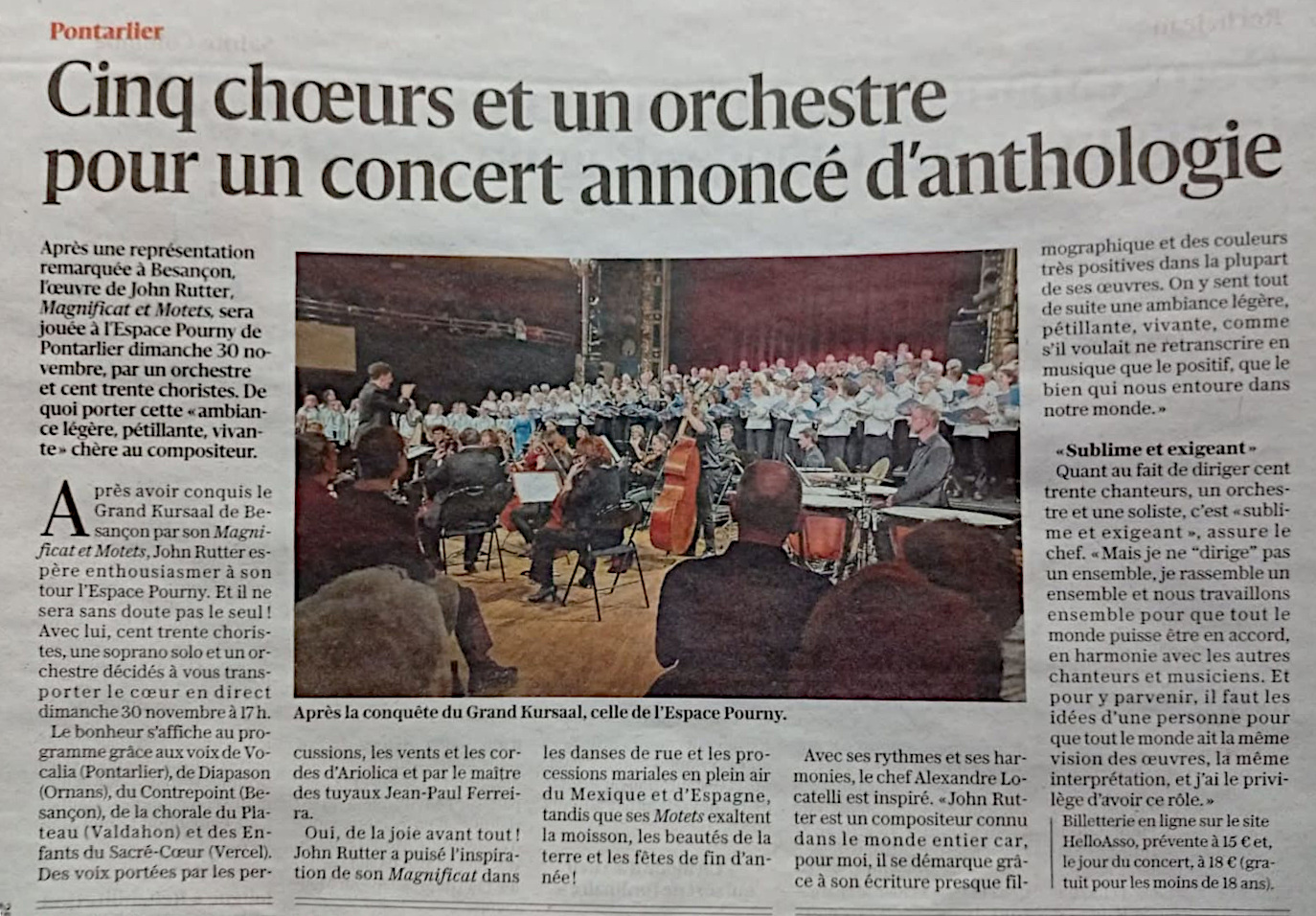 Cinq Chœurs et un orchestre pour un concert d'anthologie: Lien vers l'article de l'Est Républicain du 23 novembre 2025